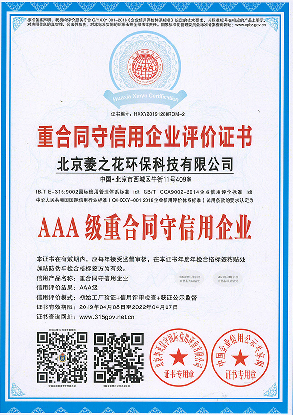 重合同守信用企業(yè)評(píng)價(jià)證書(shū)